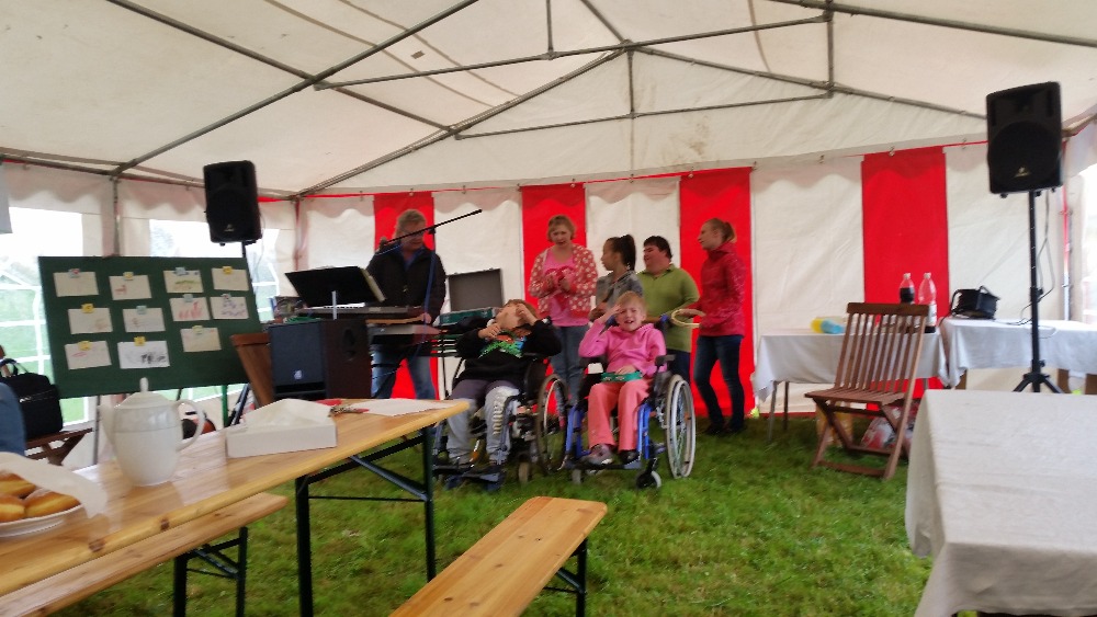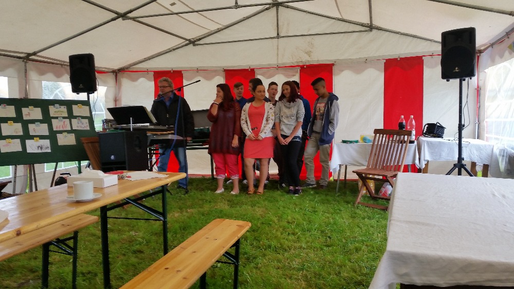 Zpěv dětí Příjemné dopoledne probíhalo na školní zahradě ve velkém stanovém přístřešku, a tak jsme nemuseli mít obavu, že zmokneme. Tímto patří poděkování místním hasičům, kteří nám vyšli vstříc a přístřešek postavili. Děkujeme!