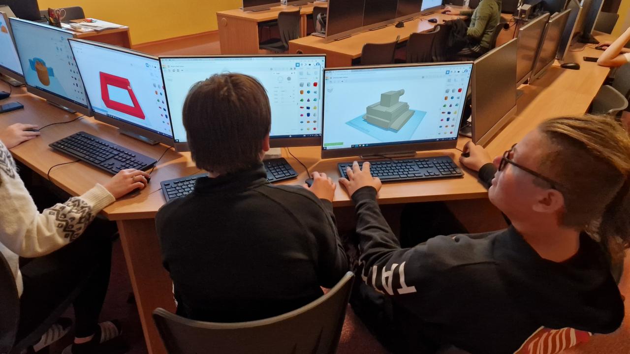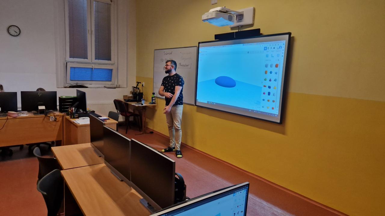 Kroužek pod vedením pana Johna probíhá každé úterý od 15:20 a je zaměřen na základy 3D modelování v programech Tinkercad a poté i v Blenderu. Samozřejmě pracujeme i s novou 3D tiskárnou - nastavování parametrů a příprava 3D modelů k tisku. Cílem je se postupně dozvědět vše, co potřebujeme, abychom byli schopni si vymodelovat, vytisknout a následně upravit do finální podoby nějaký předmět, pomůcku či nějakou vychytávku.