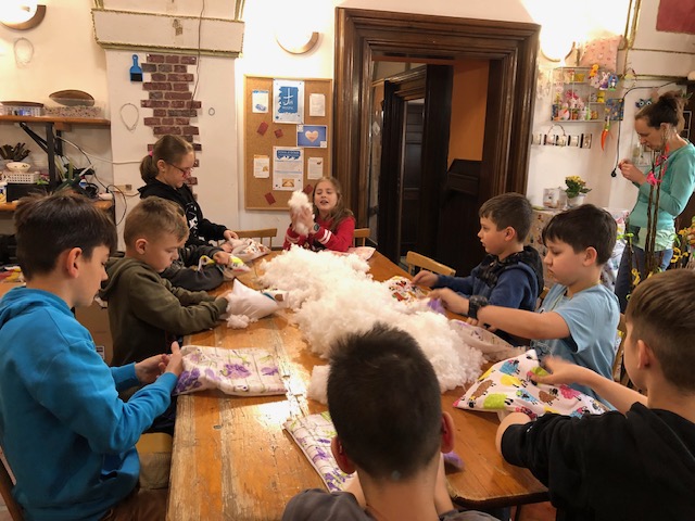 Z nabídky pro velikonoční tvoření si 14. 3. druhá skupina vybrala „polštářek od Zajíčka“. Všichni pilně polštářky plnili, zvládli jednoduché šití a dychtivě se snažili o co nejlepší výsledek. Někteří si dokonce poprvé mohli vyzkoušet práci s klasickou jehlou a nití. A opravdu, polštářky se všem náramně povedly a jistě příjemně potěší třeba ty nejbližší.