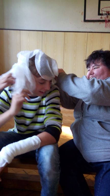 Pracovníci ČK Yvone Veselá, Jaroslav Kolouch a Pavel Neužil naimitovali různá zranění na tělech samotných žáků, například zranění hlavy, různé formy krvácení nebo zlomeniny končetin a naši žáci se snažili, pod jejich vedením a s využitím zdravotnického materiálu, tato zranění ošetřit, či poskytnout první pomoc při bezvědomí s využitím zdravotnické loutky.