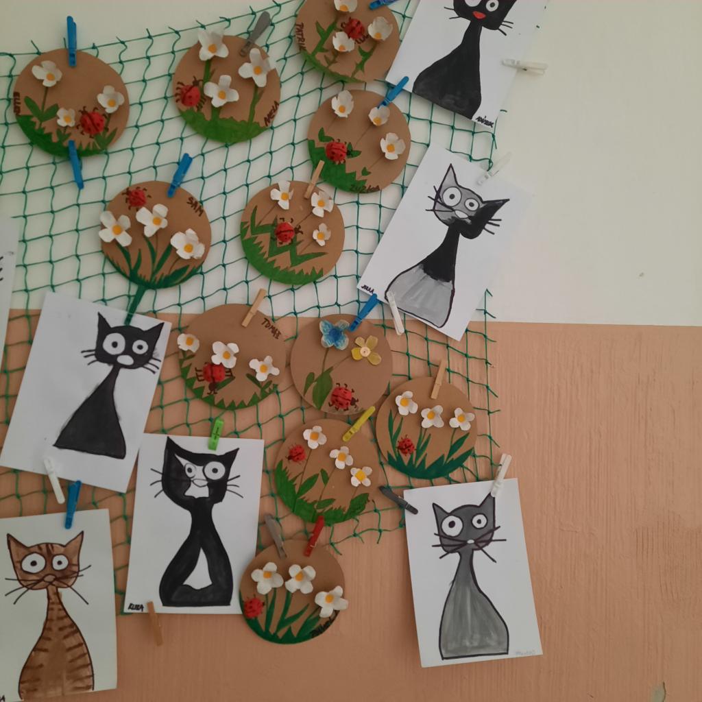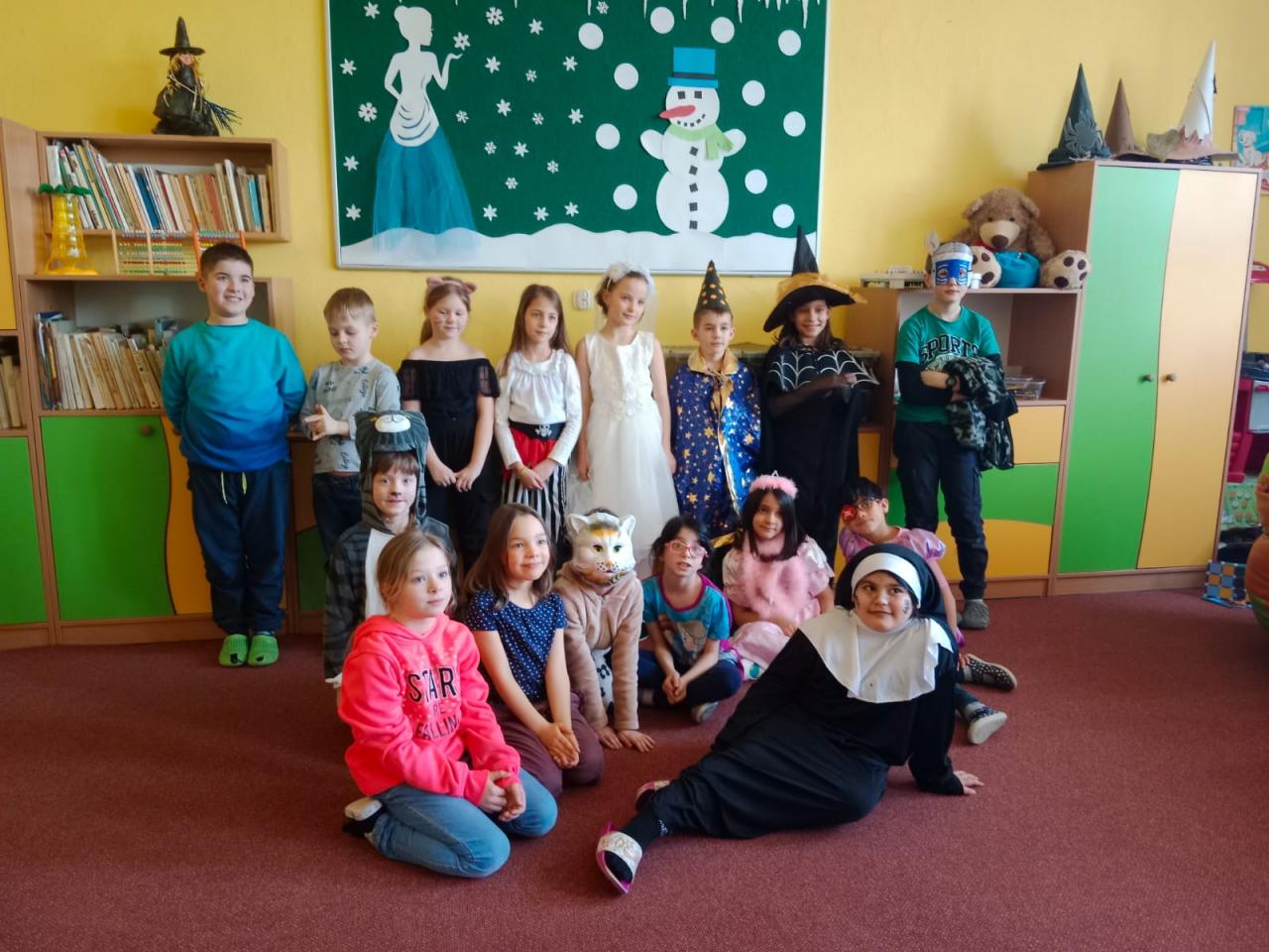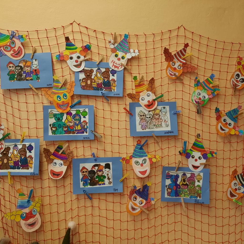 I přesto, že byl únor velmi krátký, stihli jsme plno výtvarných prací a činností. Nakreslili jsme spoustu obrázků. Začátkem měsíce jsme se věnovali zvířátkům v zimě, jejich stopám. Povídali jsme si i o domácích zvířátkách a udělali si svůj statek. Nezapomněli jsme ani na svátek sv. Valentýna. Vytvořili jsme srdíčka a svícny. Seznamovali se s tématem masopustu: vyprávěli si o tradicích na venkově, luštili kvízy a pustili si pohádku, ale především jsme si vyrobili klauny a papírové masky. První oddělení si také uspořádalo karneval.