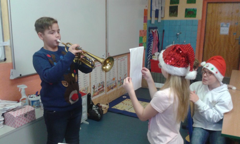 V pátek to bylo hezký. Spolužáci zahráli na nástroje a potom jsme si rozdali dárky. Pak jsme hráli hry a poslouchali Ewu Farnou – píseň Vánoce na míru. Nejvíc mě potěšil dárek od Karolínky, protože mi dala kasičku ve tvaru prasátka.