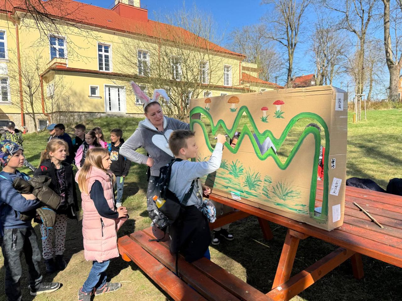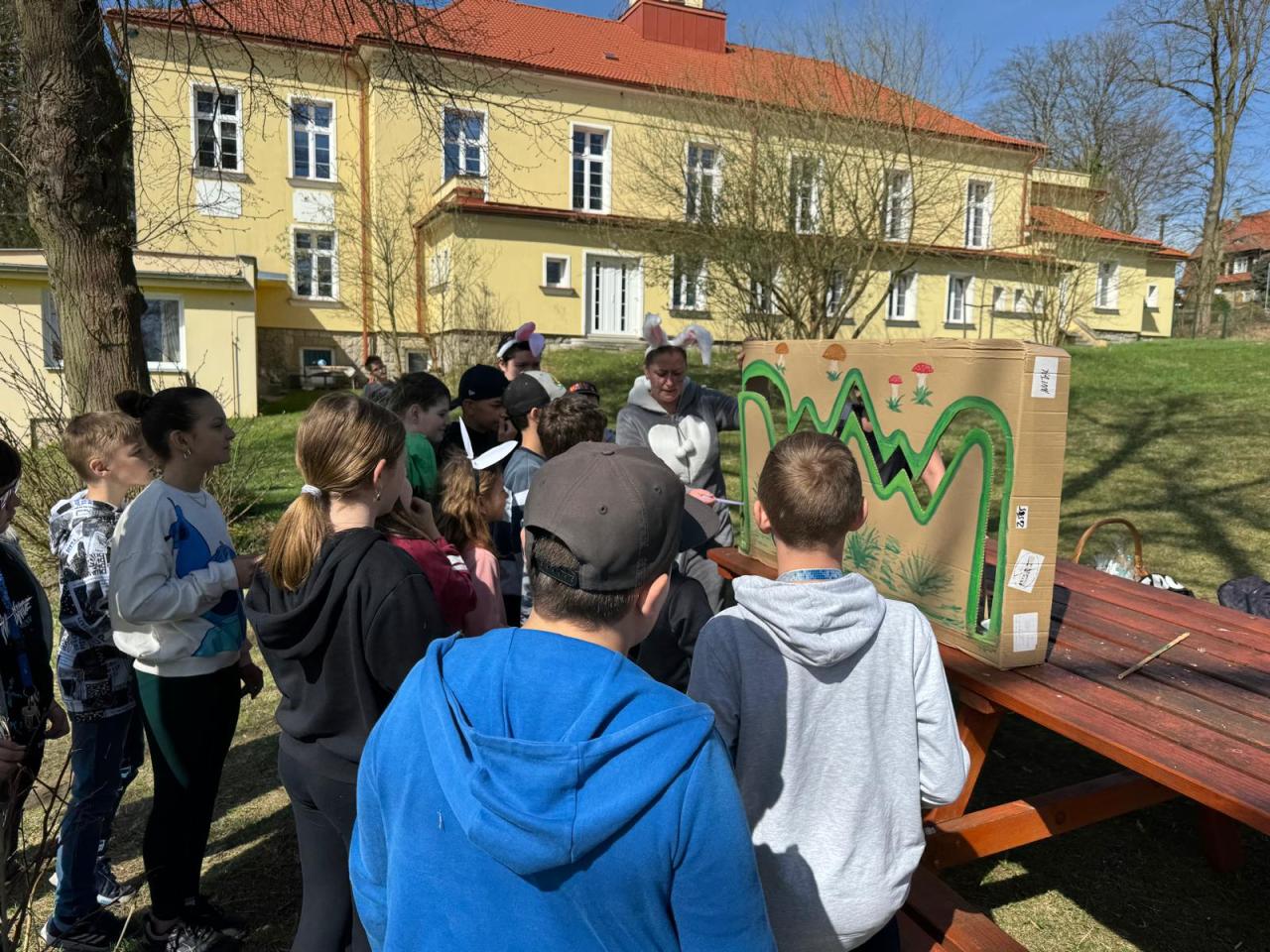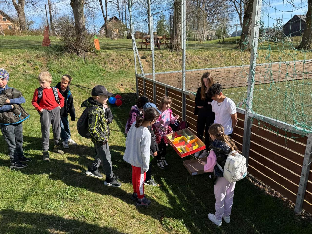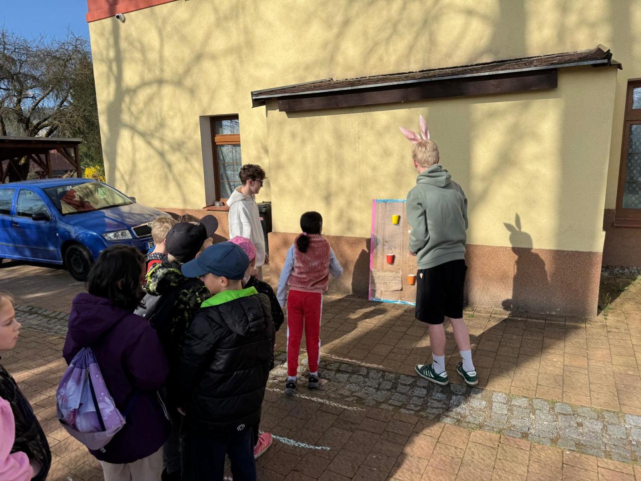 Pro žáky 1. stupně byla připravena venkovní velikonoční akce, kterou zorganizovali žáci 8. třídy.