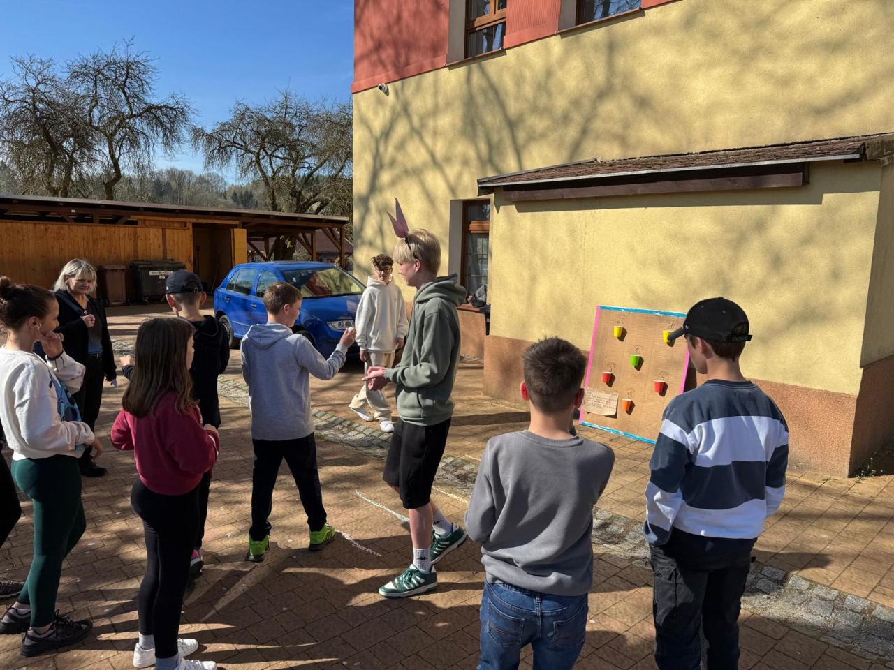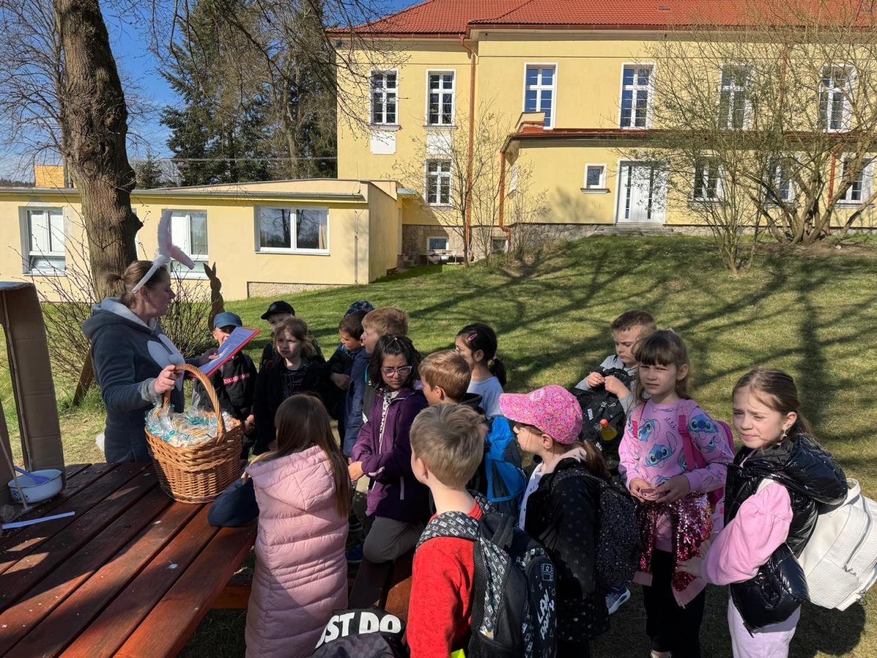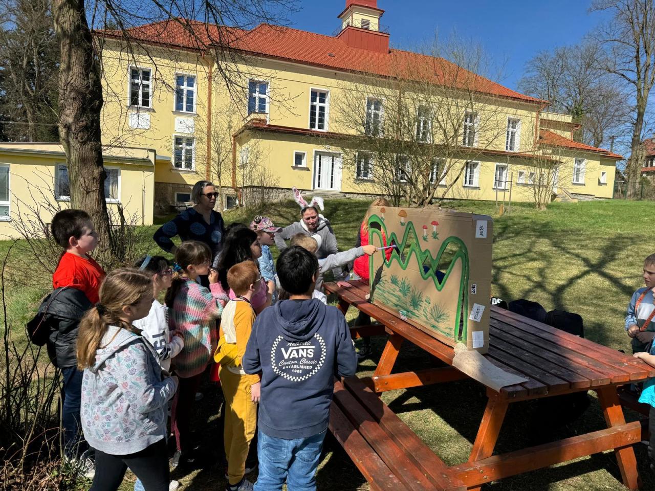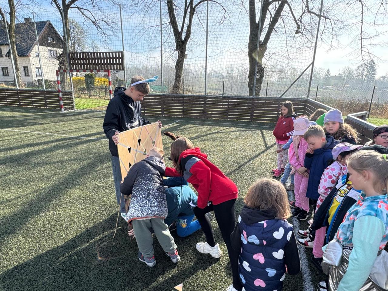 Pro žáky 1. stupně byla připravena venkovní velikonoční akce, kterou zorganizovali žáci 8. třídy.