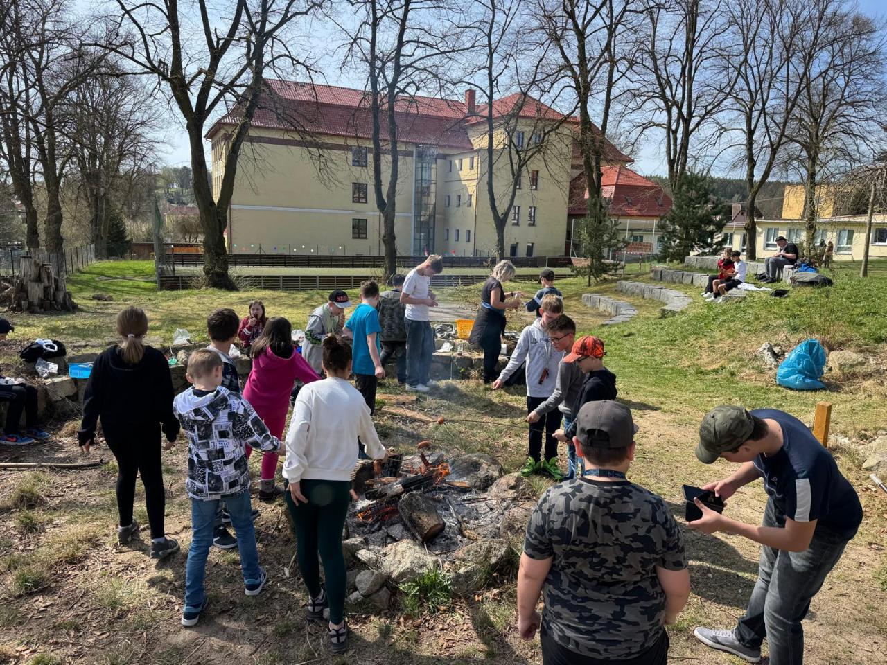 Na závěr celé trasy čekalo na děti i příjemné zpestření – u ohniště si mohly opéct buřty a společně si užít jeden z prvních opravdu slunečných jarních dnů.