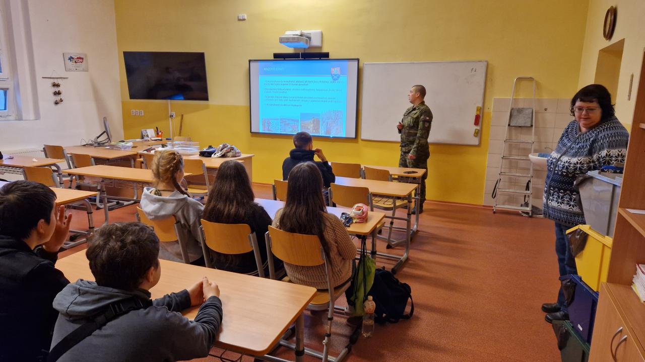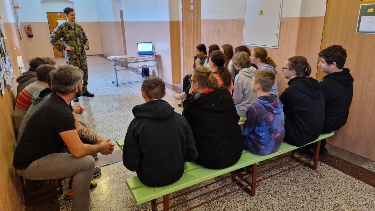 V prezentační části poznali interaktivní formou jednotlivé složky ozbrojených sil našeho státu a jejich personální obsazení, byli také nevtíravým způsobem vtaženi do této problematiky .