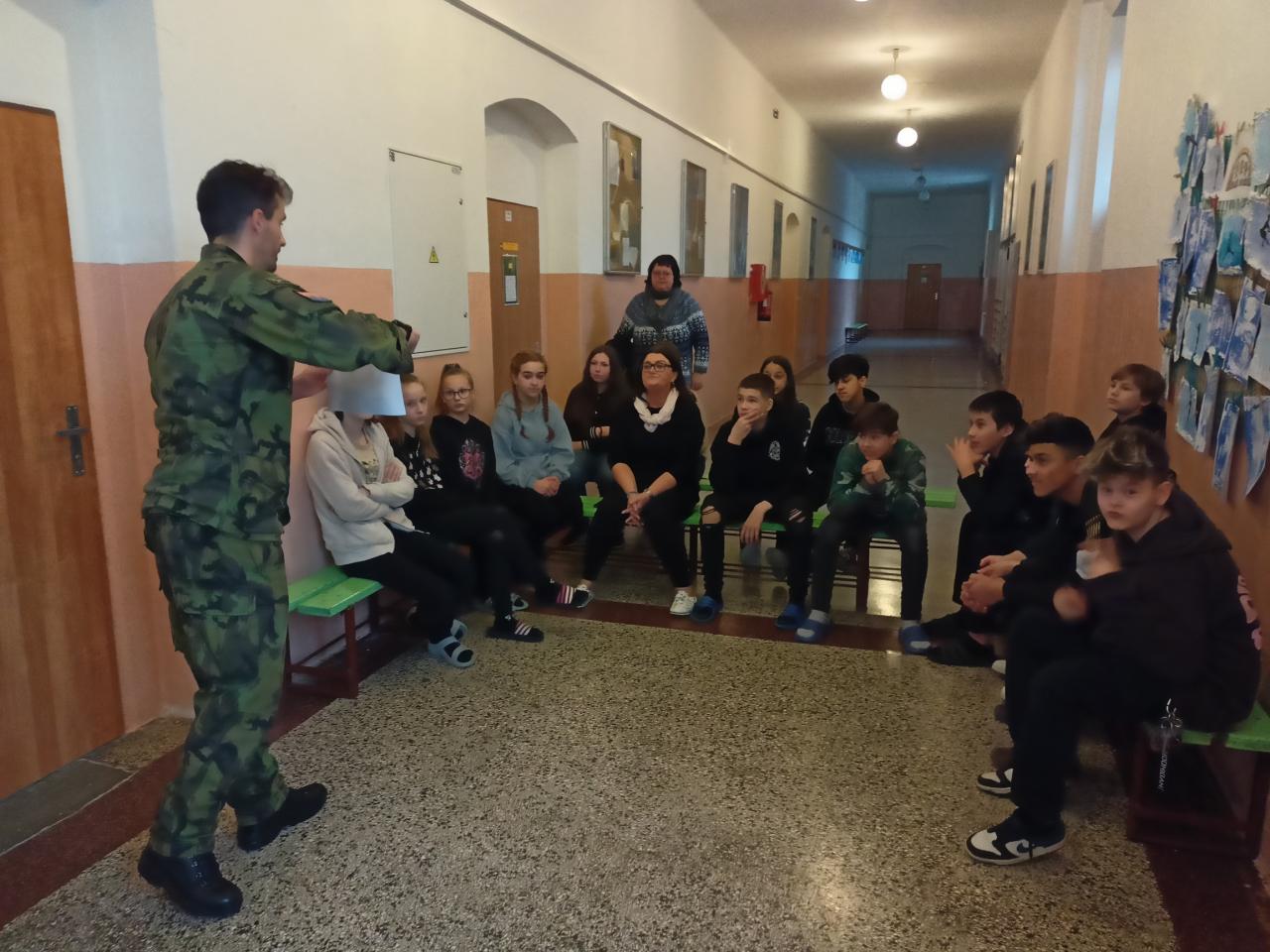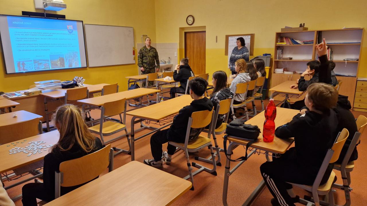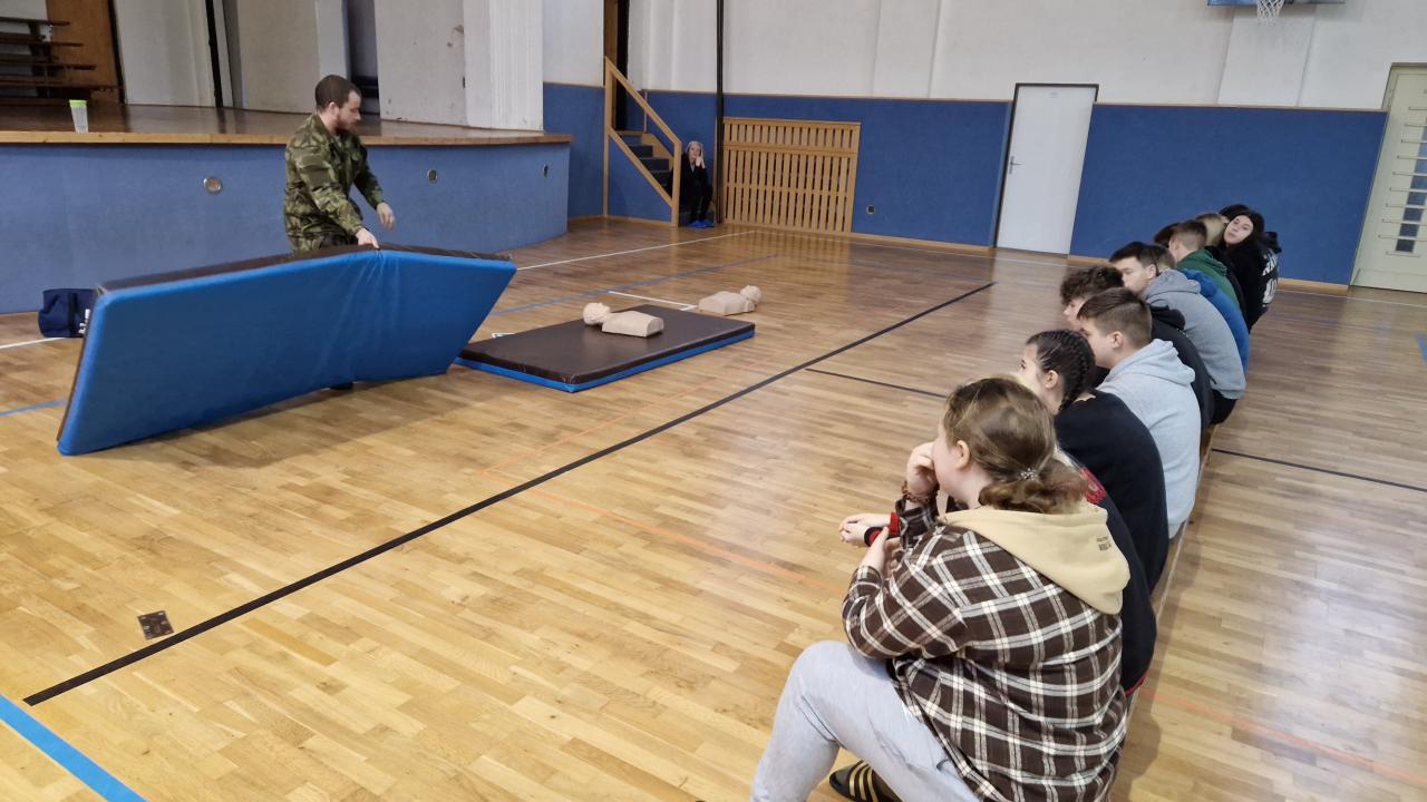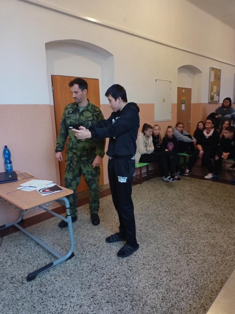 3) V pátek 9.2.2024 se uskutečnila pro žáky 2. stupně během dopoledne akce POKOS (Příprava občanů k obraně státu), kterou uspořádalo Krajské vojenské velitelství v Karlových Varech.