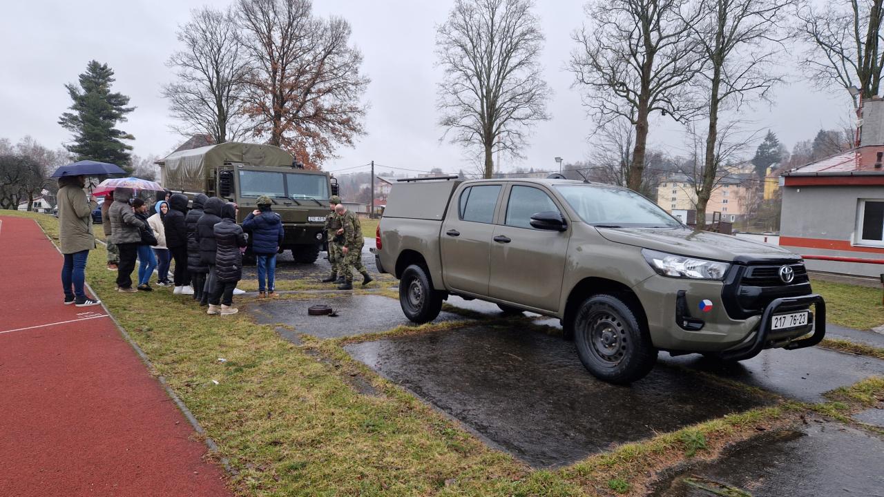 Na stanovišti vojenské techniky žáci měli možnost prozkoumat a blíže si prohlédnout vozy Tatra 815 a Toyota Hilux. Tato vozidla jsou nedílnou součástí vojenského arzenálu a žáci měli možnost si prohlédnout nejen jejich exteriér, ale i interiér. Někteří dokonce usedli za volant či nahlédli do přepravního prostoru, díky čemuž mohli získat představu o tom, jaké jsou možnosti vojenské mobilizace.