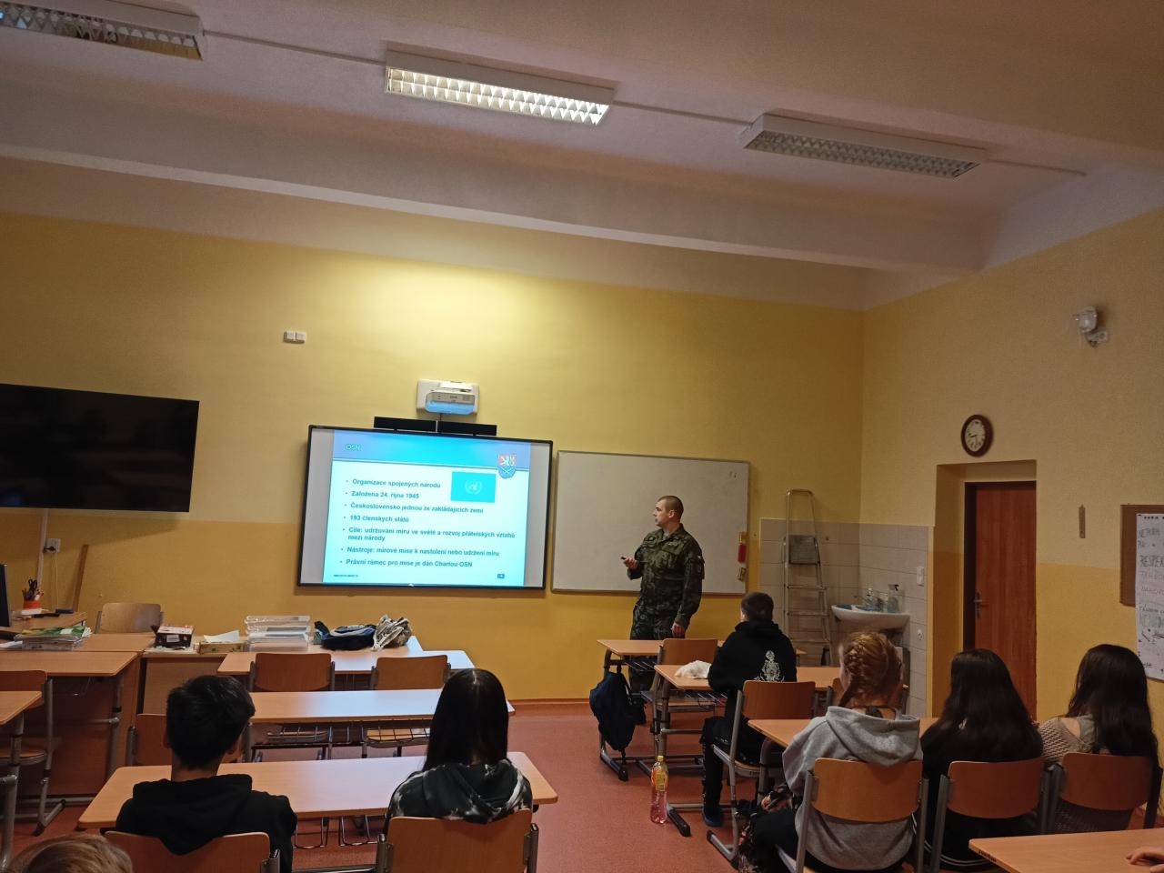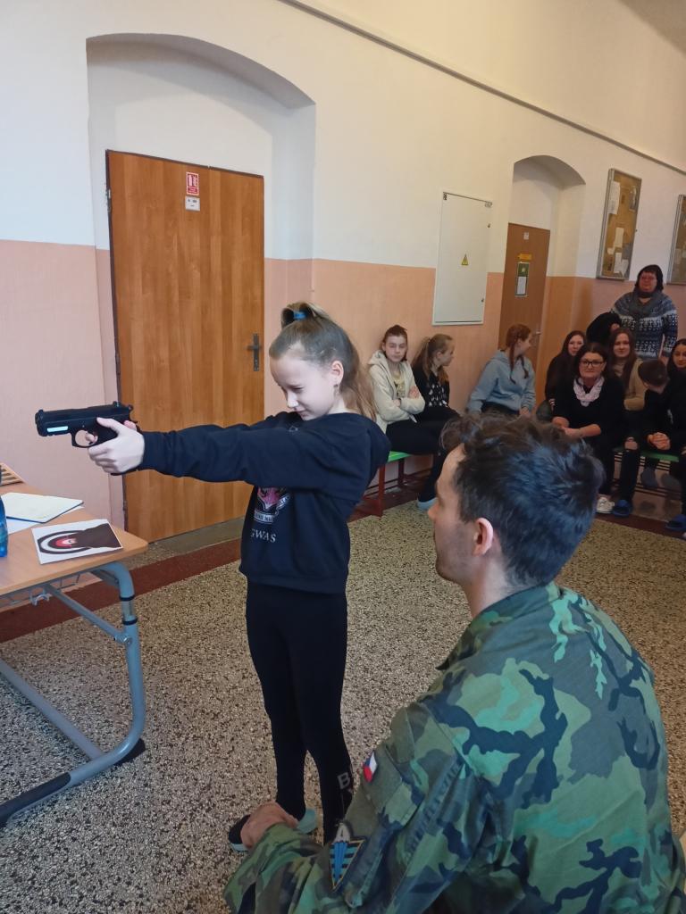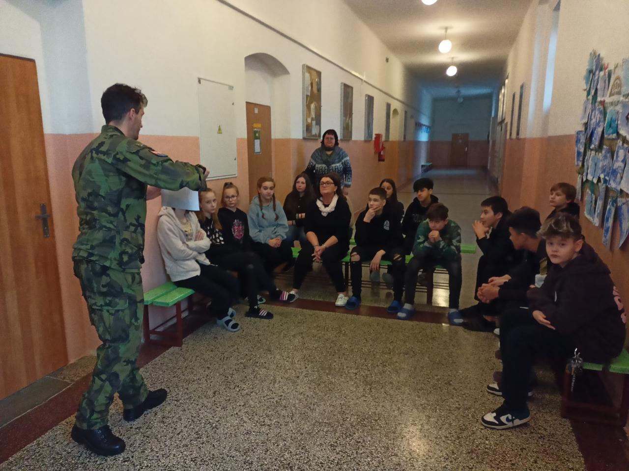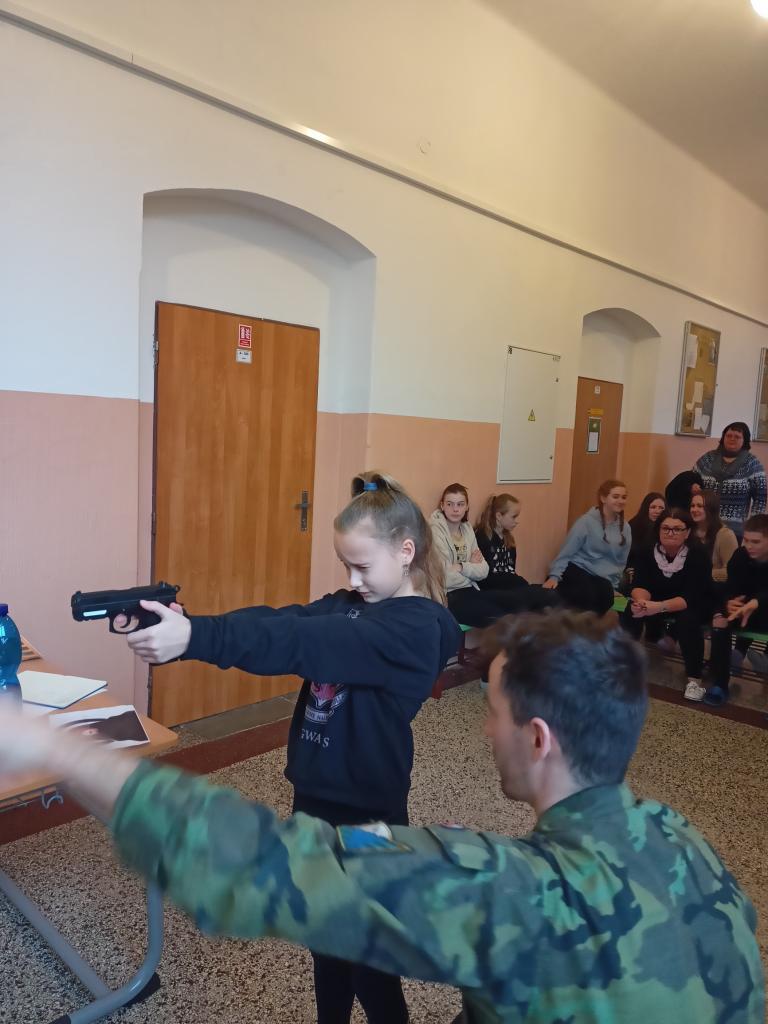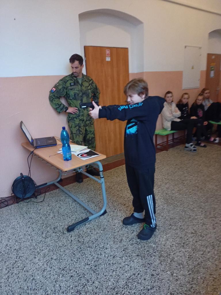 1) V pátek 09. 02. 2024 měli žáci druhého stupně naší školy nezapomenutelnou zkušenost – návštěvu vojáků z Krajského velitelství KV v rámci programu POKOS. Tato akce nabídla našim žákům možnost nahlédnout do světa vojenských operací a technologií a získat nové dovednosti a poznatky.