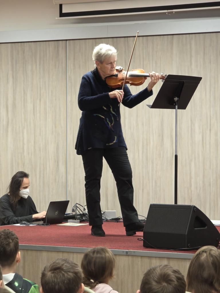 Žákům zde byly předvedeny jednotlivé nástroje, na kterých je možno se v ZUŠ naučit hrát. Slyšeli jsme například flétnu, trumpety, tubu, trombón, housle, keyboard i akordeon a harmoniku.