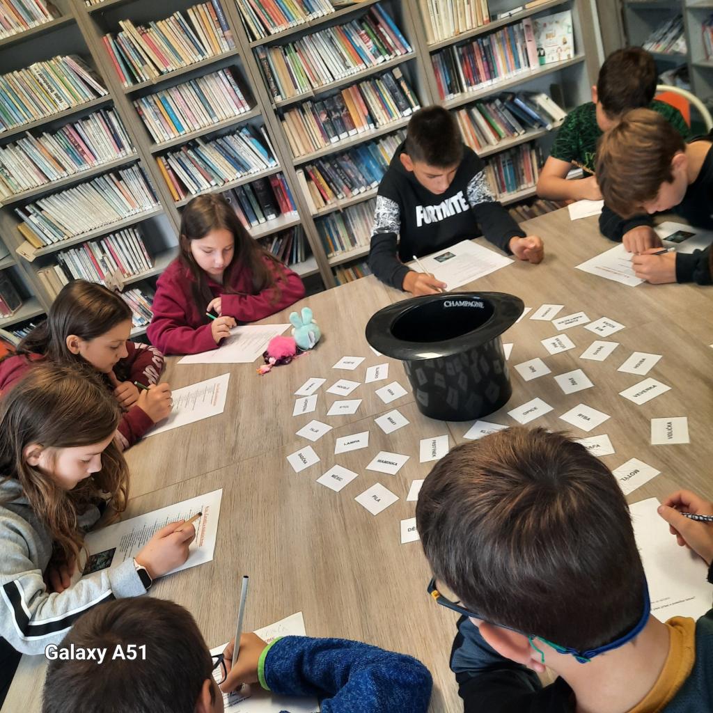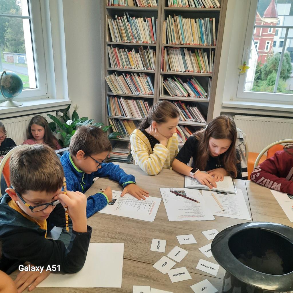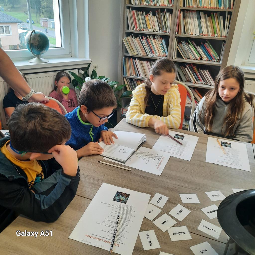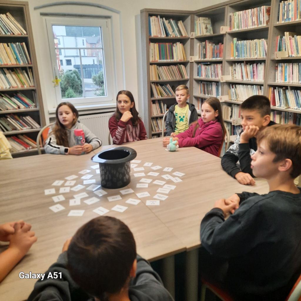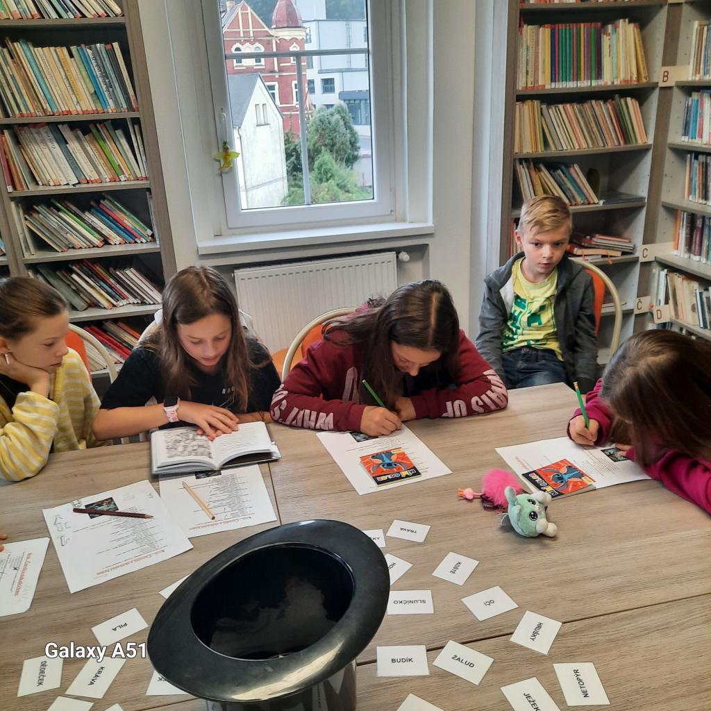 Na závěr návštěvy čekala na žáky zábava v podobě hádanek, které si pro ně připravila paní knihovnice. Děti se s nadšením zapojily a některé z hádanek je pořádně potrápily. Jako domácí úkol dostali všichni za úkol nakreslit obrázek inspirovaný bajkou Čaroděj a skákací hrnec, který mají přinést zpět do knihovny.