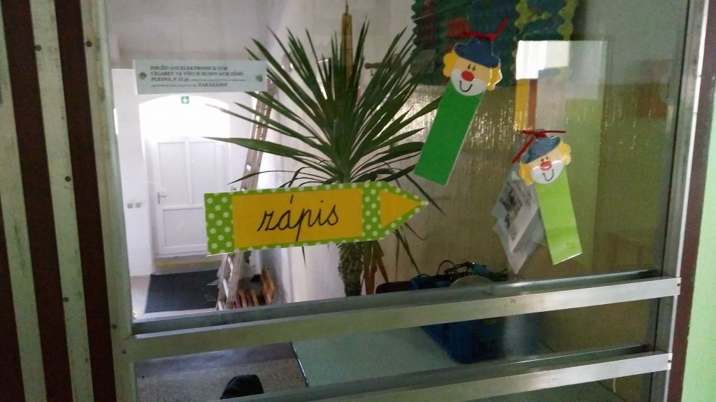 Vzhledem ke zkušenostem, které jsme měli v předchozích letech, jsme se rozhodli, že dětem zpříjemníme případné čekání. Ve školní družině byly připraveny žákyně 9. třídy a věnovaly se dětem, které si zde chtěly zkrátit čekání. V tomto roce se však větší fronta netvořila, rodiče s dětmi přicházeli postupně. Přesto si některé děti rády v družině pohrály. Deváťačkám děkuji za ochotu a čas, který doplňkovému programu zápisu věnovaly.