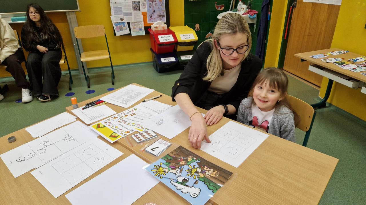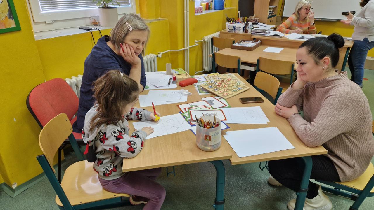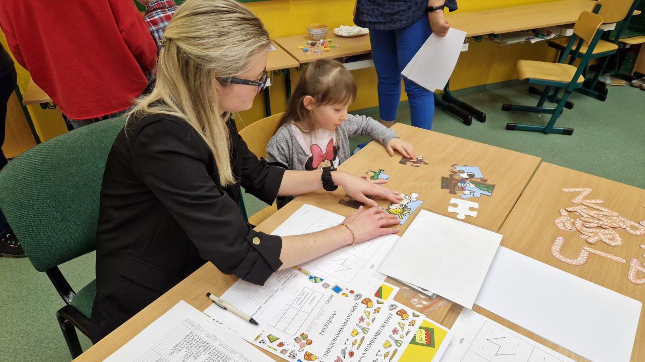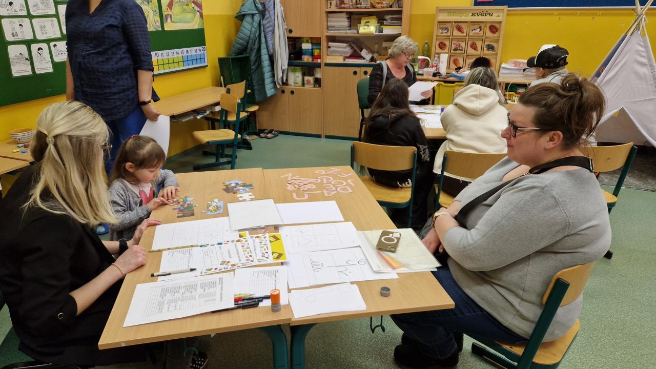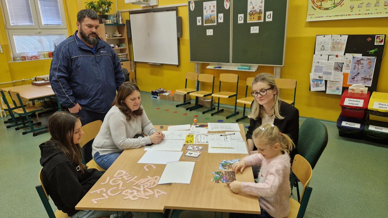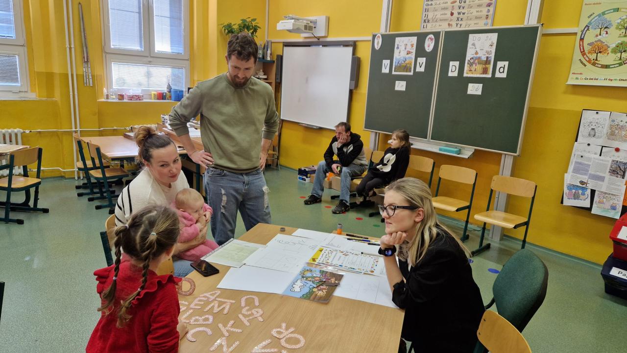 Na chodbě bylo připraveno několik činností tak, aby se děti mohly při čekání zabavit. Některé toho rády využily, jiné se raději držely s rodiči.