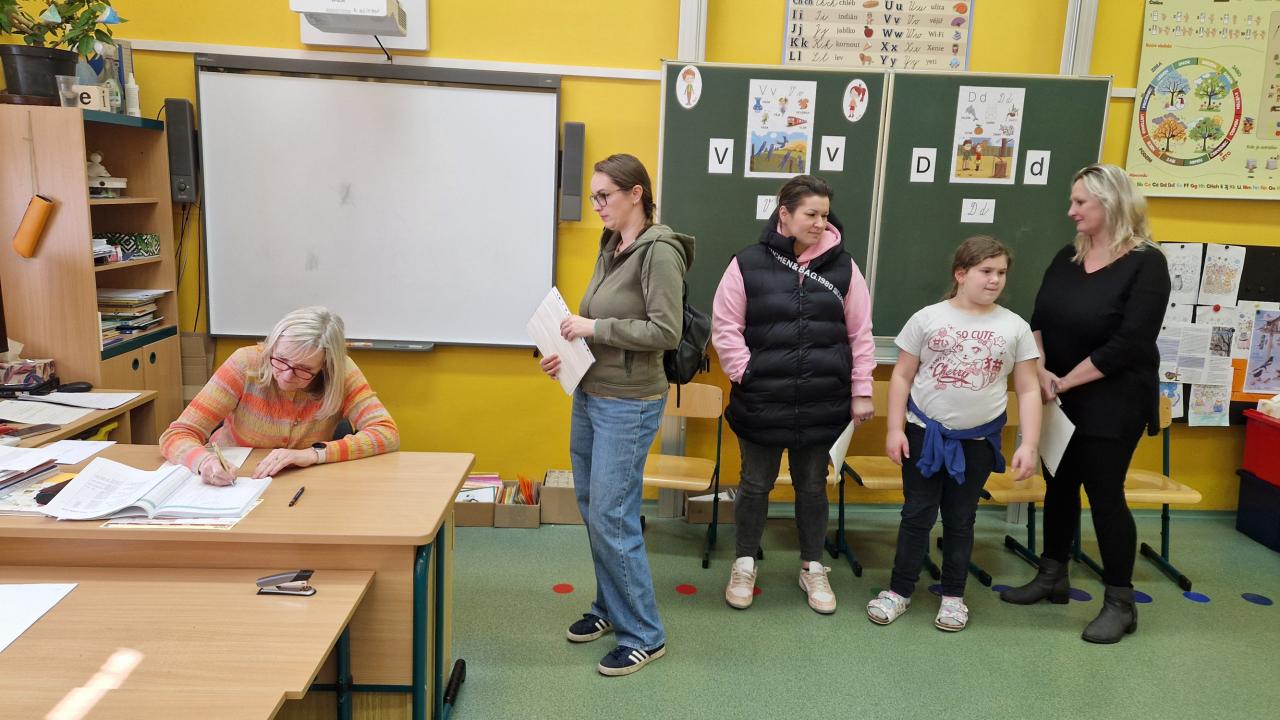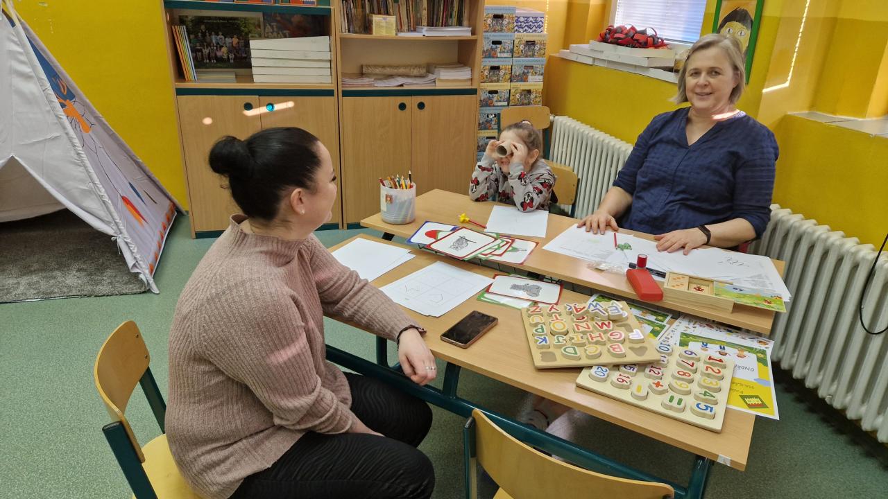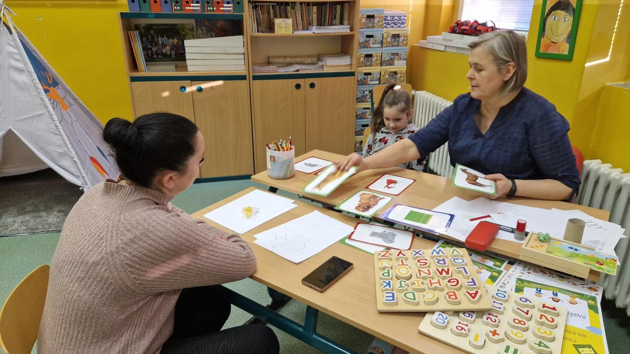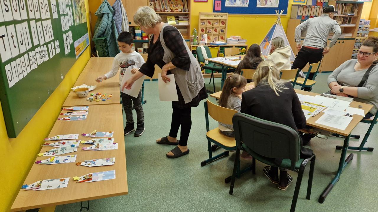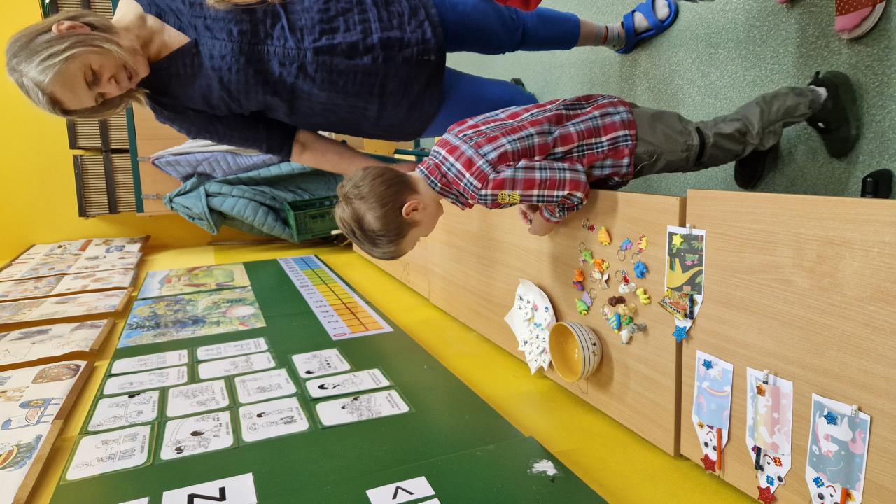 Na chodbě bylo připraveno několik činností tak, aby se děti mohly při čekání zabavit. Některé toho rády využily, jiné se raději držely s rodiči.